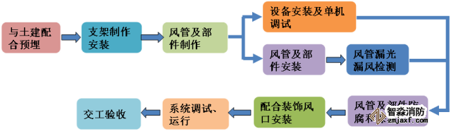 ①空調(diào)風(fēng)系統(tǒng)施工工藝流程