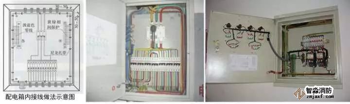 4、箱(柜)內(nèi)接線:先將線(纜)理順,按照100~200mm的間距用尼龍扎帶進行綁扎,拐角兩側(cè)30~50mm及分支處應(yīng)設(shè)扎帶,按照黃色(L1)、綠色(L2)、紅色(L3)、淡藍色(N)、黃綠相間色(PE)分別接入A相、B相、C相、N線、PE線端子上,多股線應(yīng)壓接線端子;標識:應(yīng)在N、PE端子排附近刻寫或粘貼“N"、“PE”標識,進入配電盤的外部回路應(yīng)扎回路牌,進入配電盤的控制線在導(dǎo)線套上號碼管;接地:配電箱(柜)的接地螺栓、箱門上的接地螺栓、電源進線回路的PE線、配電箱饋出各個回路的PE線、與配電箱連接金屬導(dǎo)管均應(yīng)PE端子直接連接,導(dǎo)通良好。