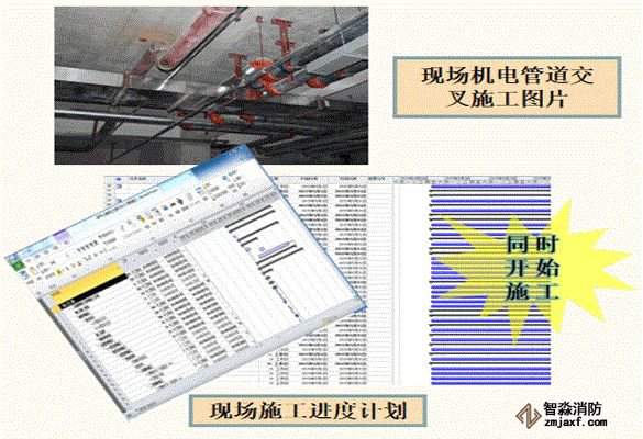 解決對(duì)策:運(yùn)用BIM模型合理安排工期,通過(guò)導(dǎo)出CAD各專業(yè)施工圖紙,下發(fā)給機(jī)電各專業(yè)分包,安裝期間打破常規(guī)的安裝順序(先通風(fēng),后水、最后電氣)大大加快施工工期,減少交叉施工,按照先上后下的順序進(jìn)行施工。減少窩工情況的出現(xiàn)。