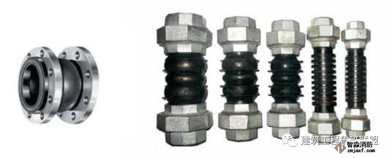 2. 水泵、冷水機組、風機盤管、空調(diào)機組等機電設(shè)備與水管之間用軟管連接,不使振動傳遞給管路。軟管有兩類:橡膠軟接管和不銹鋼波紋管。橡膠軟接管隔振減噪的效果很好,缺點是不能耐高溫和高壓,耐腐蝕性也差。在空調(diào)與采暖的水系統(tǒng)中多用橡膠接管。不銹鋼波紋管能耐高溫、高壓和耐腐蝕,但價格較貴,一般用于制冷劑管路的隔振。