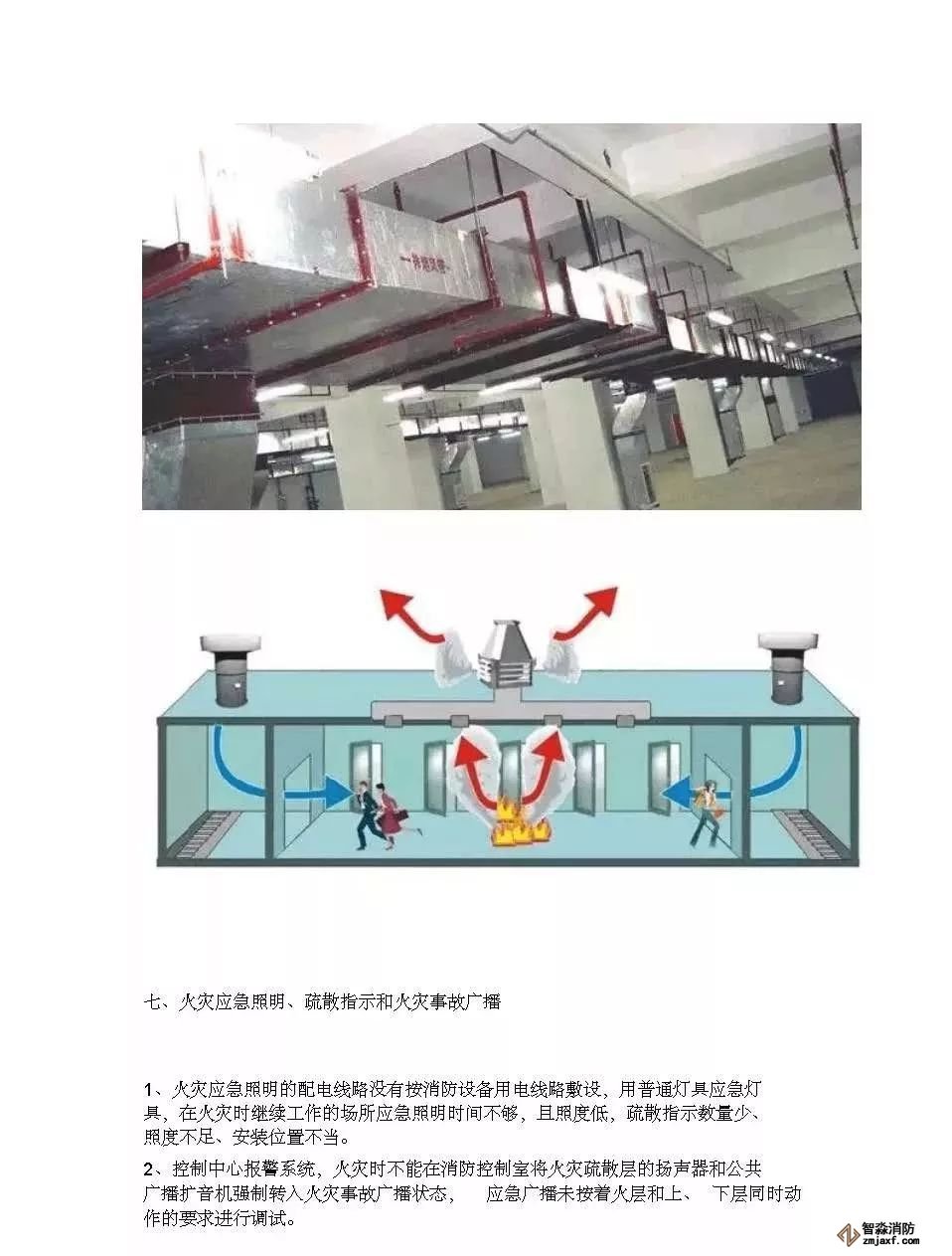 6.商業(yè)營業(yè)廳內店鋪裝修時,廣告牌和門頭下垂高度大于50cm,形成獨立的防煙分區(qū),但未設排煙口。主要是因為店鋪在內部裝修時不經統(tǒng)一審核,設計單位不能及時提醒造成的。遇到此類問題,一般要求廣告牌在排煙口附近位置留缺口或增設排煙口。