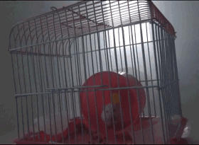 實(shí)驗(yàn)畫(huà)面顯示:此時(shí)被困人員聽(tīng)到獨(dú)立感煙探測(cè)器的報(bào)警聲,準(zhǔn)備通過(guò)逃生窗逃生,倉(cāng)鼠正常存活。)
