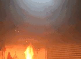 (實(shí)驗(yàn)畫(huà)面顯示,火災(zāi)發(fā)生后,獨(dú)立感煙探測(cè)器開(kāi)始報(bào)警,簡(jiǎn)易噴淋開(kāi)始噴水)
