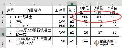 對于業(yè)主或造價咨詢?nèi)藛T在對投標文件進行回標分析的時候一定是時間緊、任務(wù)重,如何才能快速地將各家單位投標單價中的最高價和最低價以不同顏色突出顯示,以方便下一步去判斷各投標單位的投標報價高低。條件格式就可以幫我們這個忙。下面請看案例: