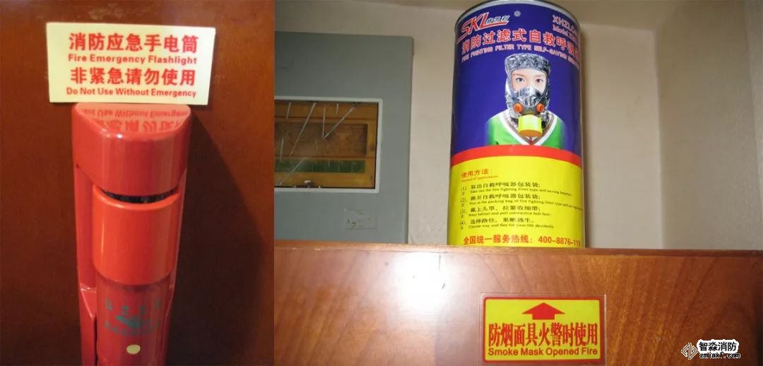 設(shè)置要求:在高層旅館等設(shè)置的應(yīng)急手電、防煙面具應(yīng)設(shè)置相關(guān)提示標牌。