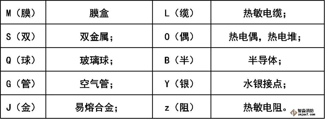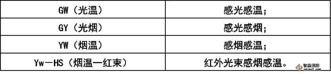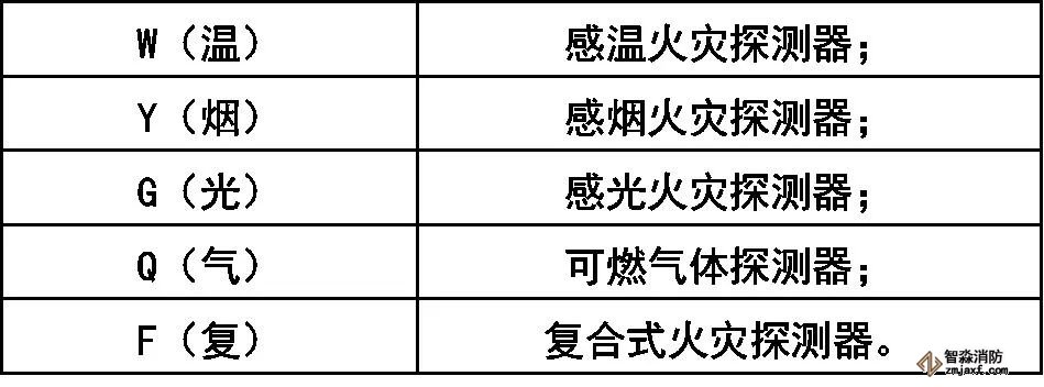 火災(zāi)探測器分類代號:
