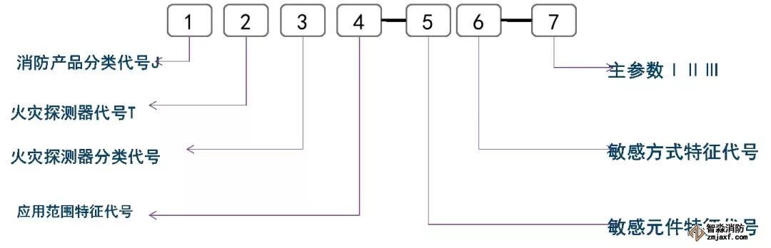 火災(zāi)探測器產(chǎn)品型號編制示例: