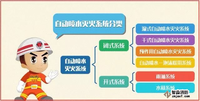 自動噴水滅火系統(tǒng)根據(jù)所使用噴頭的型式,可分為閉式自動噴水滅火系統(tǒng)和開式自動噴水滅火系統(tǒng)兩大類。