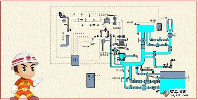 配置供給泡沫混合液的設(shè)備后,組成既可噴水又可以噴泡沫的自動噴水-泡沫聯(lián)用系統(tǒng)。