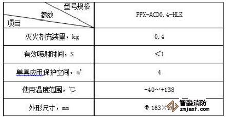 發(fā)動機(jī)艙用超細(xì)干粉自動滅火裝置主要技術(shù)參數(shù)