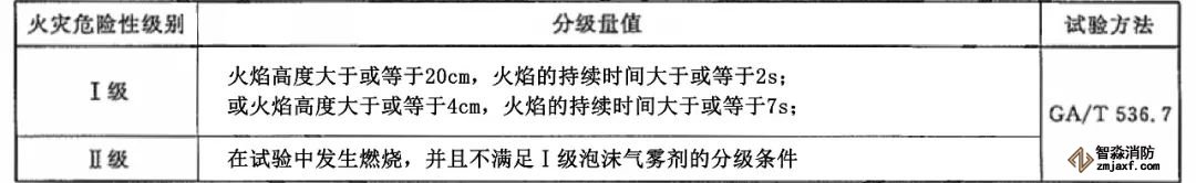 泡沫氣霧劑火災(zāi)危險(xiǎn)性分級(jí)方法見(jiàn)下表: