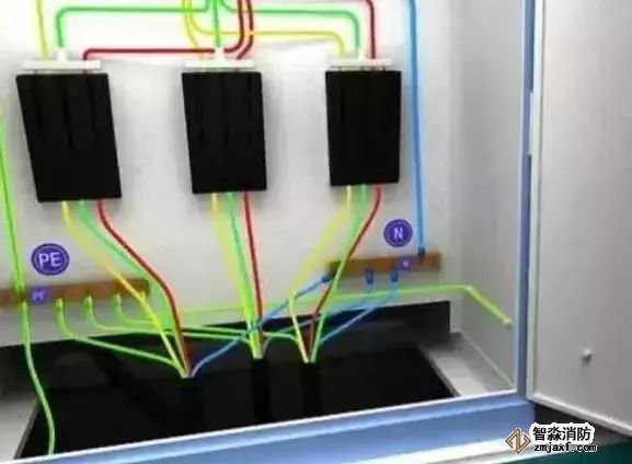1、從總配電箱的分配電開關(guān)分別引出黃、綠、紅(A、B、C)三相線,淡藍色工作零線從工作零接線端引出,黃綠雙色PE保護零線從PE端子引出。