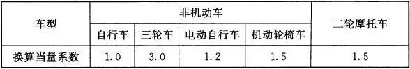 表6.1.2 非機(jī)動(dòng)車及二輪摩托車車輛換算當(dāng)量系數(shù)