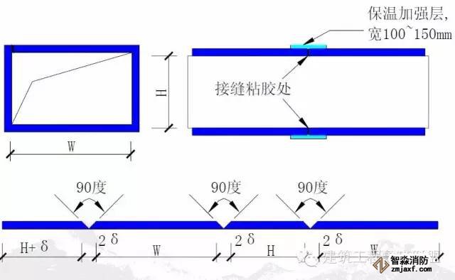 3、方形風(fēng)管保溫900轉(zhuǎn)角 處采用45度拼裝,保溫板 裁900角時(shí)不要割透,預(yù)留 5mm厚作為整體轉(zhuǎn)角用, 然后用膠水進(jìn)行拼縫。