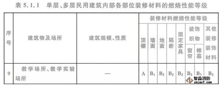 六、培訓(xùn)班設(shè)置在地下民用建筑時,內(nèi)部各部位裝修材料的燃燒性能等級,不應(yīng)低于《建筑內(nèi)部裝修設(shè)計防火規(guī)范》5.3.1的規(guī)定,參照“教學(xué)場所”執(zhí)行。