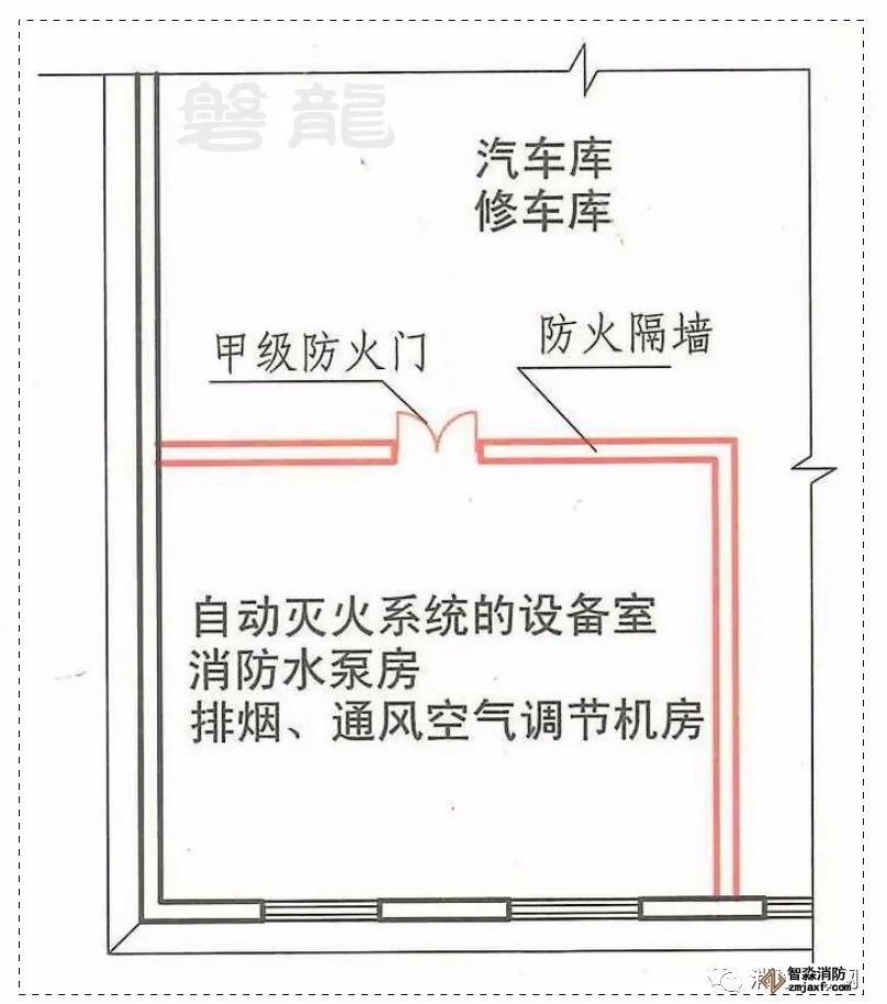 需要說明的是,同時為汽車庫和其他功能部分服務(wù)的設(shè)備用房,不應(yīng)劃入汽車庫防火分區(qū),應(yīng)采用防火墻和耐火極限不低于2.00h的不燃性樓板與汽車庫分隔,且人員不得通過汽車庫疏散,詳見專題:設(shè)備用房與汽車庫-疏散關(guān)系及應(yīng)用誤區(qū)!