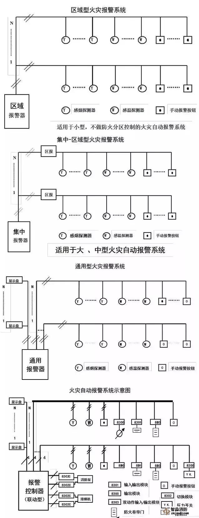 (1)區(qū)域報警系統(tǒng):由區(qū)域(火災(zāi))報警控制器和火災(zāi)探測器等組成的功能簡單的系統(tǒng)。