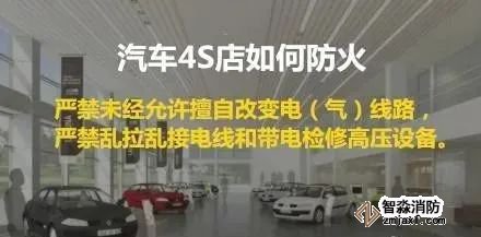 汽車 4S 店因其集汽車銷售、維修、配件和信息服務(wù)為一體,火災(zāi)荷載大,火災(zāi)事故時(shí)有發(fā)生。汽車 4S 店如何防火?↓↓↓