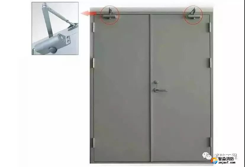 雙扇防火門應(yīng)具有按順序自行關(guān)閉的功能,通過順序器來(lái)實(shí)現(xiàn)。