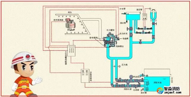 預(yù)作用系統(tǒng)與濕式系統(tǒng)、干式系統(tǒng)的不同之處,在于系統(tǒng)采用雨淋閥,并配套設(shè)置火災(zāi)自動報(bào)警系統(tǒng)。