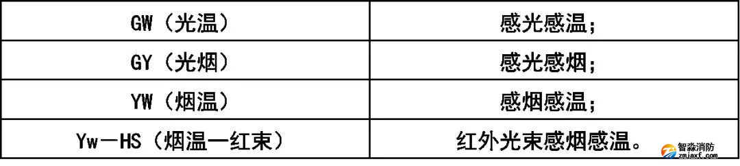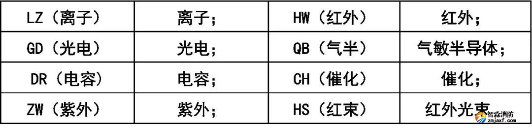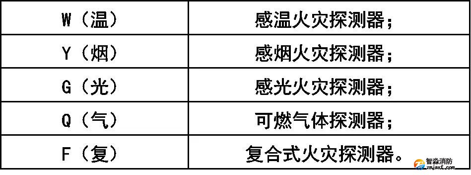 火災(zāi)探測器分類代號: