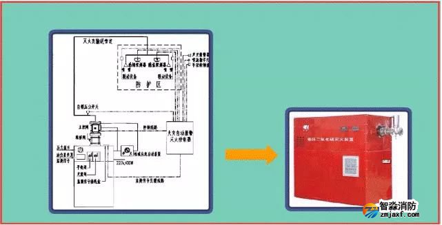 該系統(tǒng)由滅火劑儲存裝置、總控閥、驅(qū)動器、噴頭、管道超壓泄放裝置、信號反饋裝置、控制器等組成。
