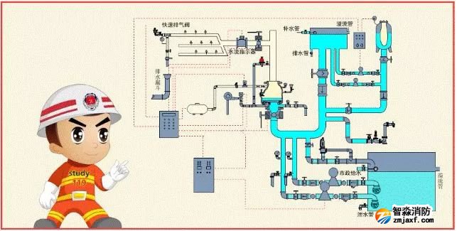 配置供給泡沫混合液的設(shè)備后,組成既可噴水又可以噴泡沫的自動噴水-泡沫聯(lián)用系統(tǒng)。