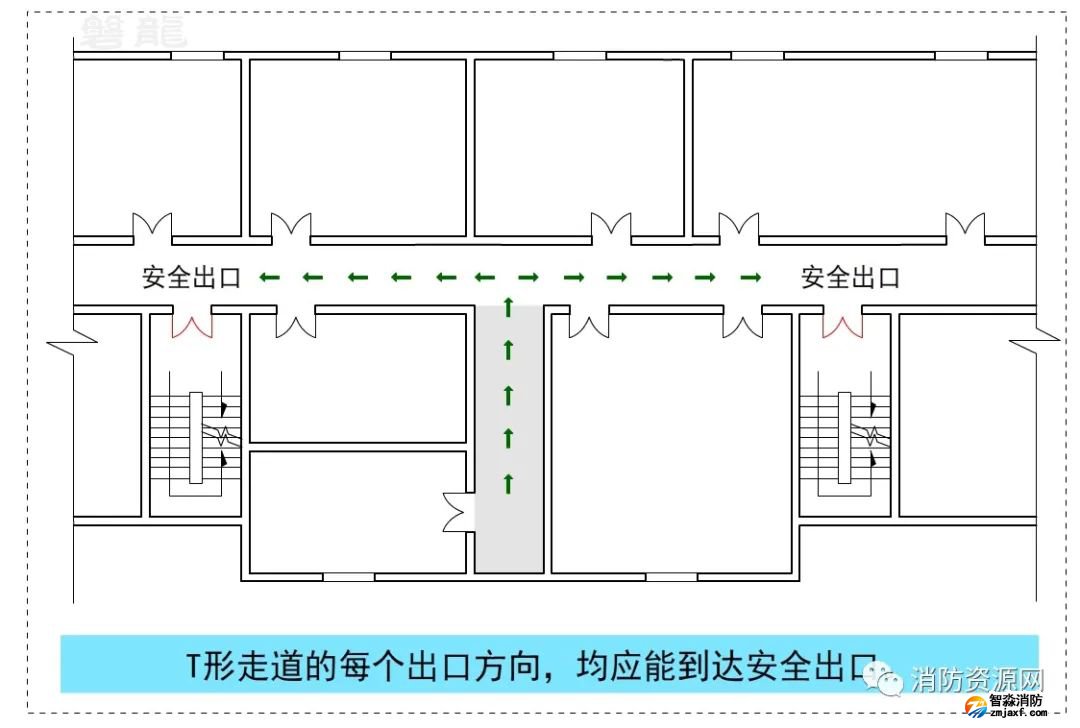 四、關(guān)于T形走道的疏散方案及疏散距離計算,參專題: T形走道-宜與忌!疏散距離計算規(guī)則!