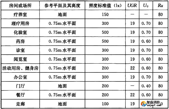 表1 療養(yǎng)院建筑主要功能用房及輔助空間照度值