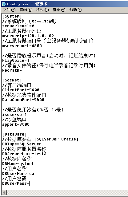 配置后臺(tái)控制軟件后打開c:program files GSTNet_ClientMaintain目錄下的配置文件config.ini,其中的設(shè)置項(xiàng)有:[Server]