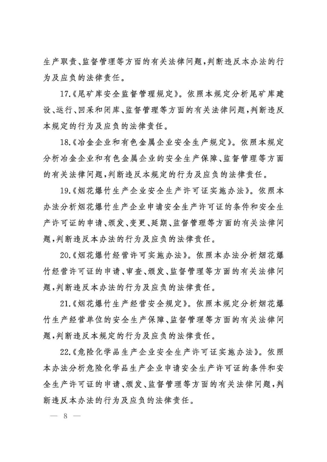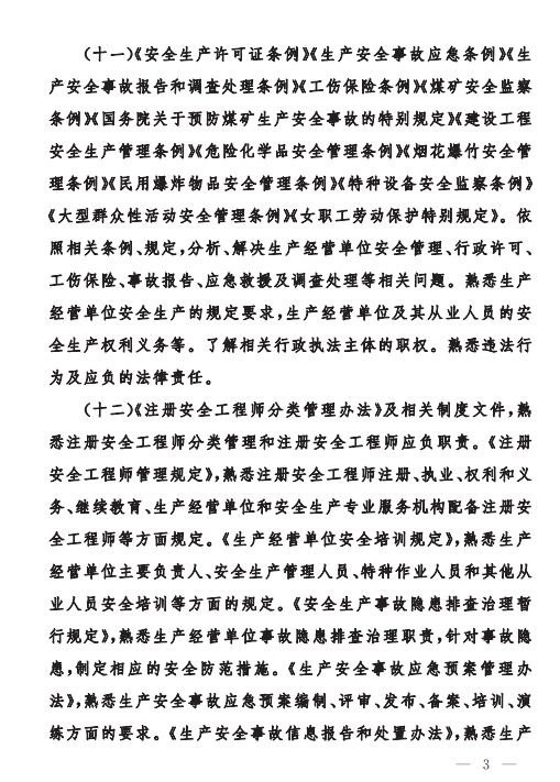 為做好中級(jí)、初級(jí)注冊(cè)安全工程師職業(yè)資格考試工作,按照《注冊(cè)安全工程師職業(yè)資格制度規(guī)定》《注冊(cè)安全工程師職業(yè)資格考試實(shí)施辦法》(應(yīng)急〔2019〕8號(hào))有關(guān)要求,應(yīng)急管理部組織編制了《中級(jí)注冊(cè)安全工程師職業(yè)資格考試大綱》《初級(jí)注冊(cè)安全工程師職業(yè)資格考試大綱》,經(jīng)商住房和城鄉(xiāng)建設(shè)部、交通運(yùn)輸部同意,人力資源社會(huì)保障部審定,現(xiàn)予以印發(fā)施行。