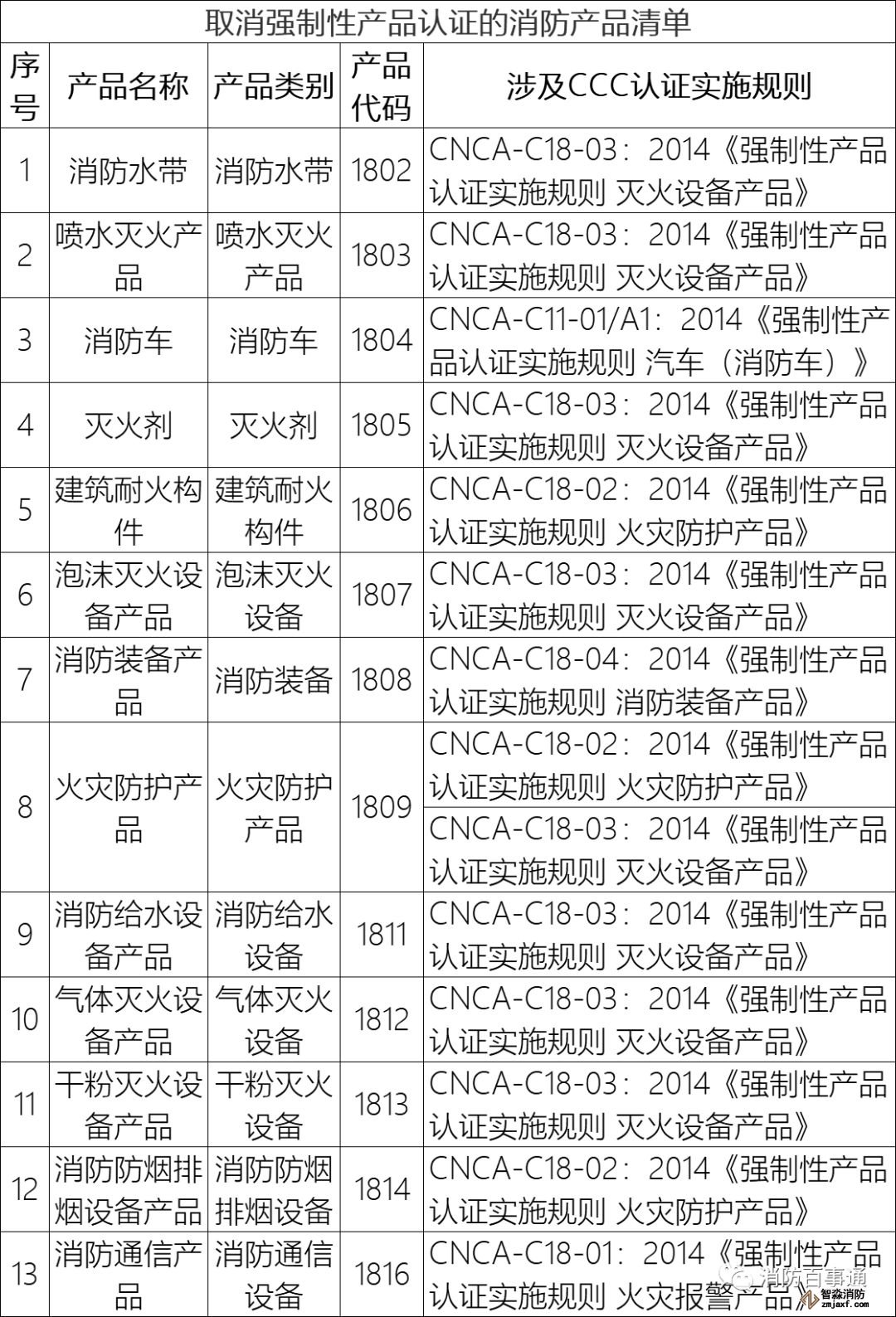 2019年7月29日,國家市場監(jiān)督管理總局、應急管理部發(fā)布了《關(guān)于取消部分消防產(chǎn)品強制性認證的公告》(2019年第36號)(詳見附件),對消防水帶、噴水滅火產(chǎn)品等十三類消防產(chǎn)品(含部分火災報警產(chǎn)品)取消強制性產(chǎn)品認證。為依法依規(guī)開展消防產(chǎn)品合格評定工作,現(xiàn)通知如下:
