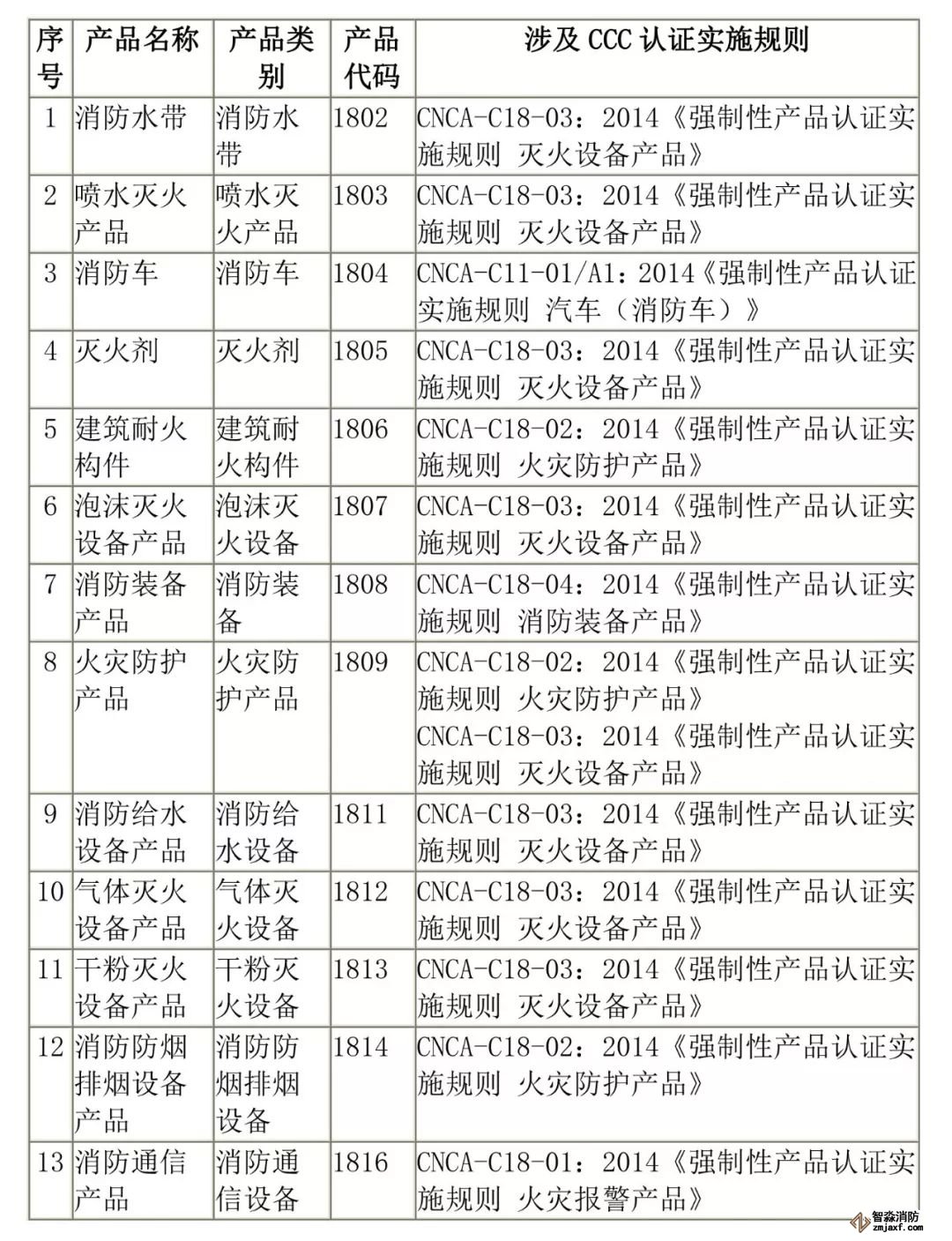 附件:取消強(qiáng)制性產(chǎn)品認(rèn)證的消防產(chǎn)品清單
