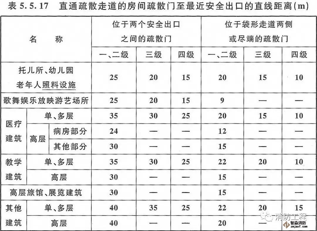 (2)敞開樓梯間:兩個安全出口之間-5m,袋形走道兩側或盡端-2m;