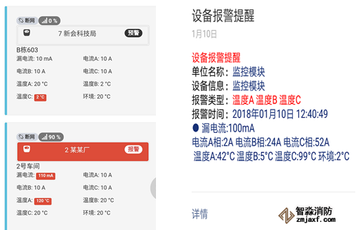 現(xiàn)場(chǎng)配電柜(箱)監(jiān)測(cè)值一旦發(fā)生安全異常,觸發(fā)本地報(bào)警器發(fā)出聲、光報(bào)警,通過(guò)云平臺(tái)監(jiān)管系統(tǒng)手機(jī)APP、Web客戶(hù)端同步發(fā)出報(bào)警提示,多種方式提醒值班人員檢修。