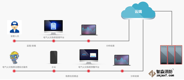 3、 通過(guò)云平臺(tái)對(duì)存儲(chǔ)數(shù)據(jù)的分析及判斷,及時(shí)掌握線(xiàn)路動(dòng)態(tài)運(yùn)行存在的用電安全隱患,及時(shí)發(fā)現(xiàn)電氣隱患,預(yù)防火災(zāi)發(fā)生,提高企業(yè)用電安全管理水平;