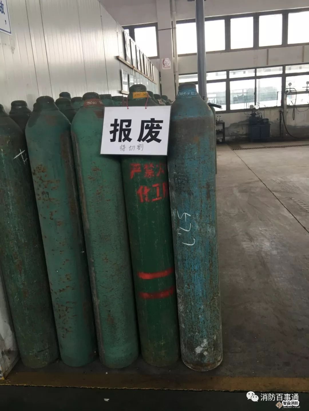 5.9.3.1 經(jīng)檢驗,滅火劑或驅(qū)動氣體鋼瓶出現(xiàn)下列情況之一的應報廢: