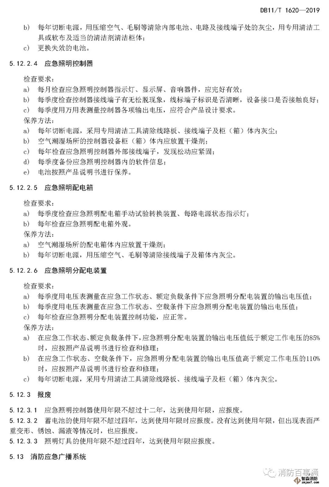 5.12.3.1 應急照明控制器使用年限不超過十二年,達到使用年限,應報廢。