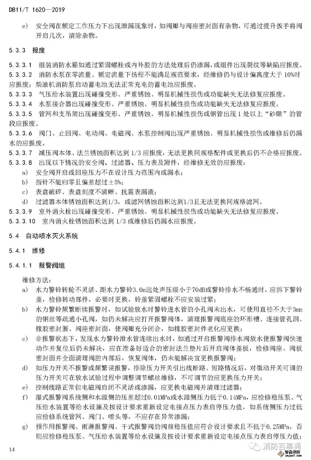 5.4.3.1 報警閥組出現(xiàn)嚴重變形、銹蝕及其他明顯機械性損傷或功能缺失無法修復時應報廢。