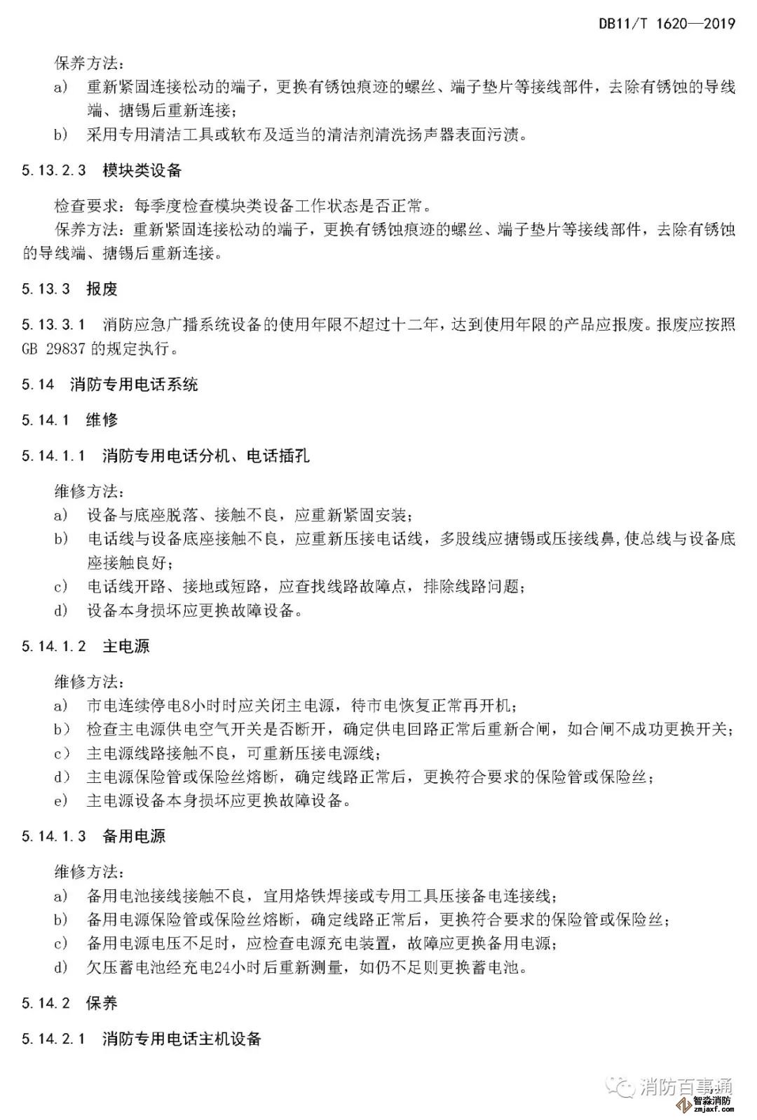 5.14.3 消防專用電話系統(tǒng)設備的使用年限不超過十二年,達到使用年限的產(chǎn)品應報廢。報廢應按照GB29837的規(guī)定執(zhí)行。