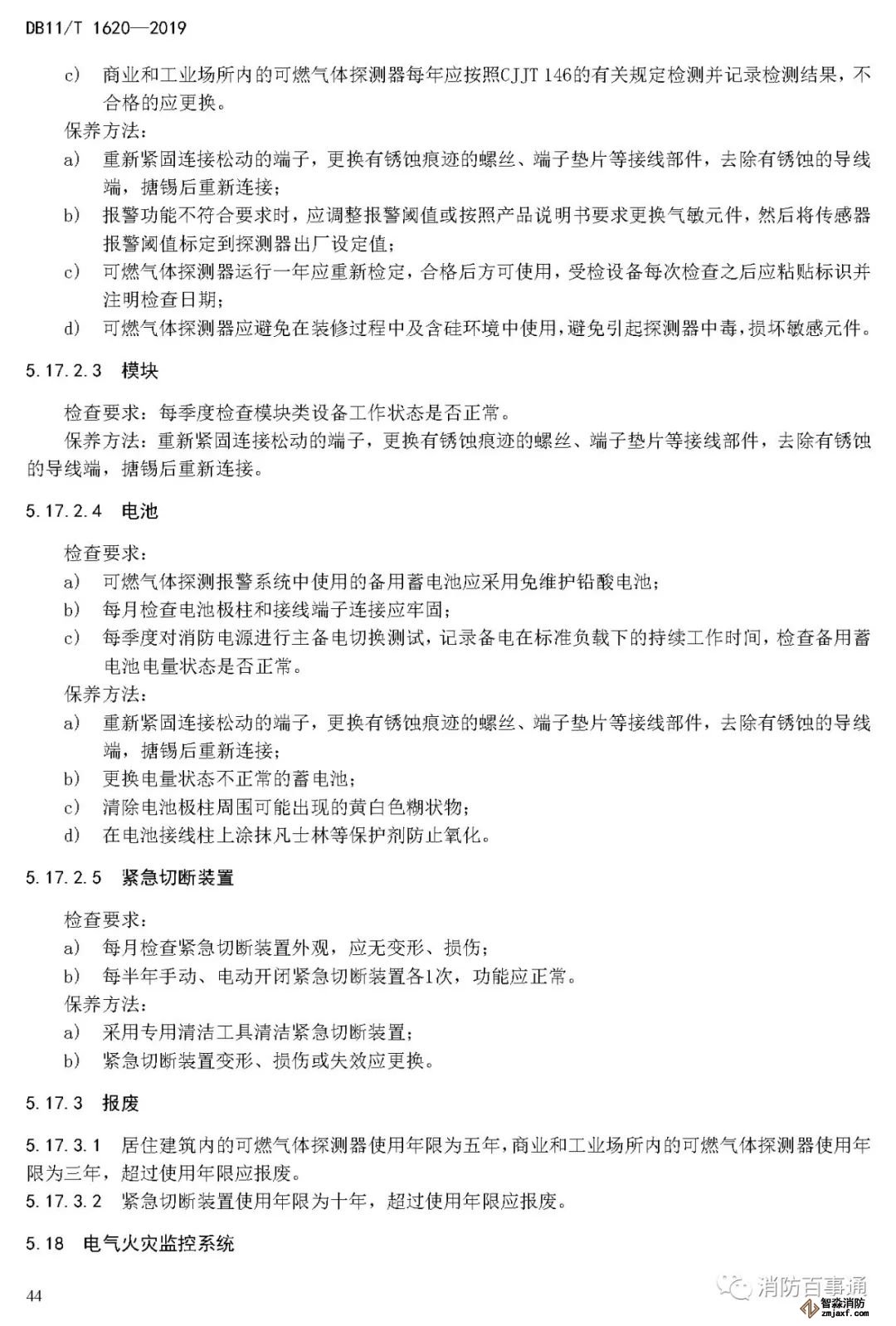 5.17.3.1 居住建筑內(nèi)的可燃氣體探測器使用年限為五年,商業(yè)和工業(yè)場所內(nèi)的可燃氣體探測器使用年限為三年,超過使用年限應報廢。