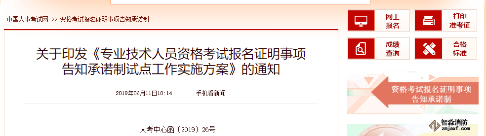 5月31日,人力資源社會保障部印發(fā)《人力資源社會保障系統(tǒng)開展證明事項告知承諾制試點工作實施方案》(以下簡稱方案)的通知,通知明確:一消、一建、一造、注安等12項專業(yè)技術人員資格考試報名時不再提供學歷、從事相關工作年限證明,實行告知承諾制。