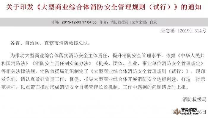 12月3日,應急管理部消防救援局印發(fā)《大型商業(yè)綜合體消防安全管理規(guī)則(試行)》的通知。第十二條明確:消防安全管理人對消防安全責任人負責,應當具備與其職責相適應的消防安全知識和管理能力,取得注冊消防工程師執(zhí)業(yè)資格或者工程類中級以上專業(yè)技術職稱。