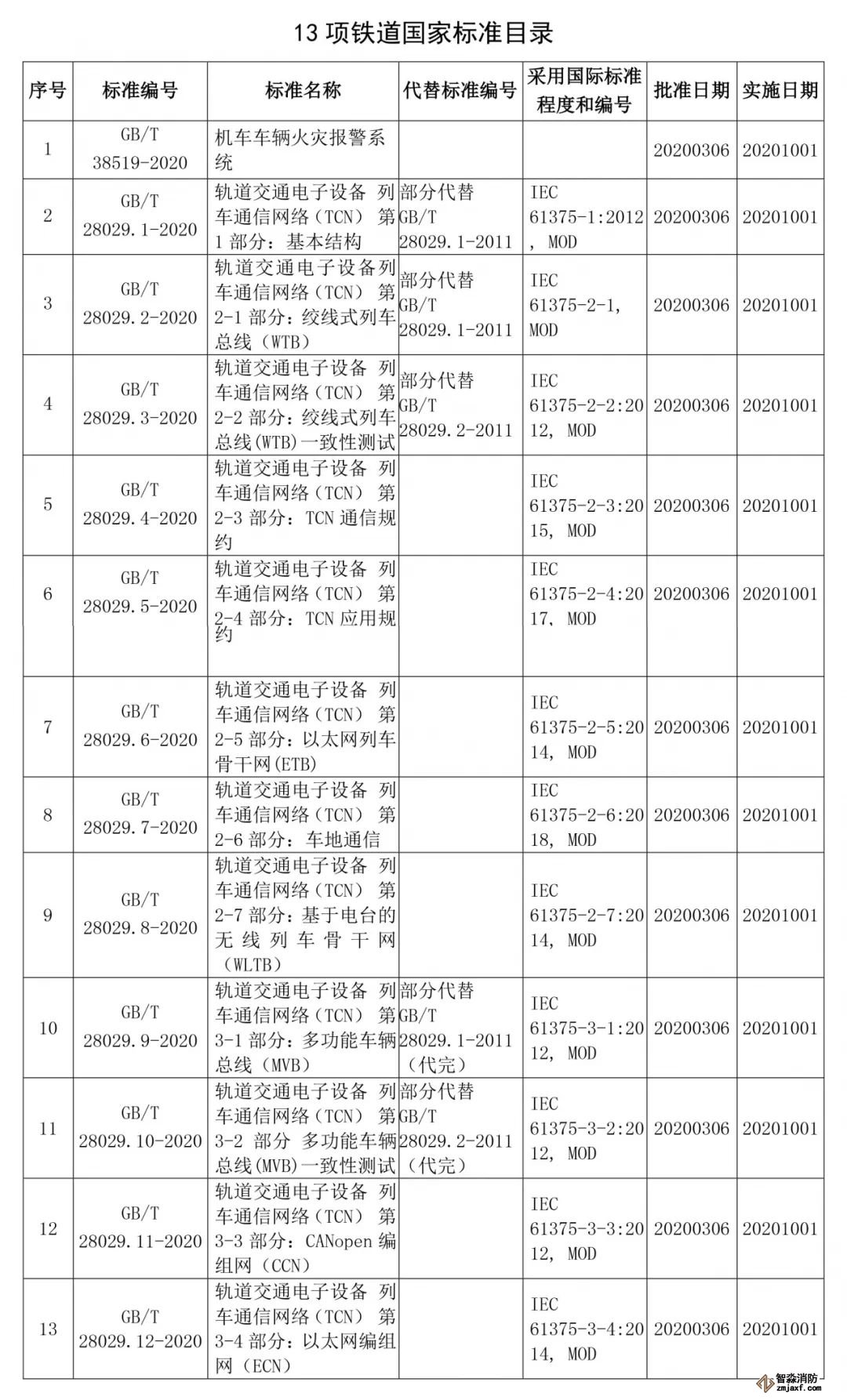 《機車車輛火災(zāi)報警系統(tǒng)》等13項鐵道國家標準正式頒布