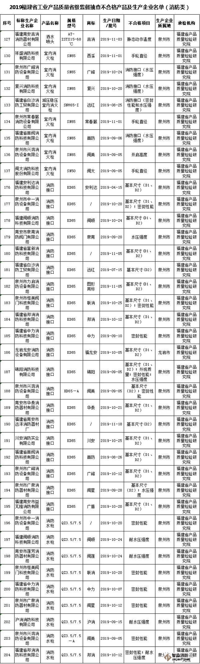 2019年福建省工業(yè)產(chǎn)品質(zhì)量省級(jí)監(jiān)督抽查情況發(fā)布,消防類多種產(chǎn)品不合格