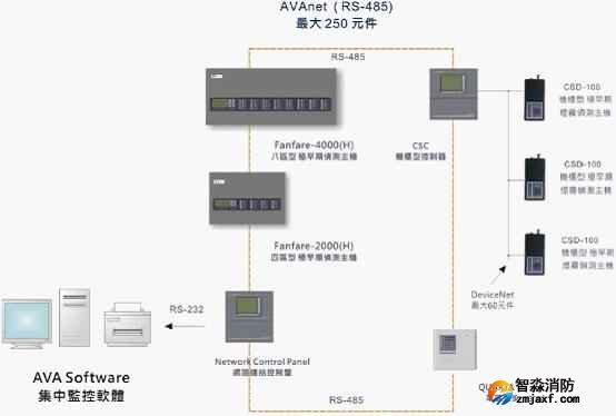 FANFARE-2000四區(qū)型極早期煙霧偵測(cè)主機(jī),可以通過(guò)輸入模塊接入火災(zāi)自動(dòng)報(bào)警報(bào)警控制器;也可以全部聯(lián)網(wǎng),并由AVA系統(tǒng)管理軟件對(duì)整個(gè)系統(tǒng)進(jìn)行設(shè)置和監(jiān)控。AVA系統(tǒng)管理軟件安裝在消防控制室的計(jì)算機(jī)上,用戶可以通過(guò)它對(duì)整個(gè)探測(cè)系統(tǒng)的所有性能進(jìn)行設(shè)置、調(diào)試和監(jiān)控。