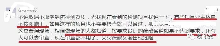 有的人認(rèn)為,取消機(jī)構(gòu)的資質(zhì)許可,誰都可以干消防,在今天這個(gè)情況下,那很可能造成更多的安全隱患。不是什么樣的機(jī)構(gòu)都可以干消防檢測(cè)或維護(hù)保養(yǎng)的,這是一個(gè)專業(yè)的事情,還是需要一定的條件的。征求意見稿提出"......依法懲處不具備從業(yè)條件、弄虛作假的違法違規(guī)行為,對(duì)嚴(yán)重違法違規(guī)的消防技術(shù)服務(wù)機(jī)構(gòu)和人員實(shí)行行業(yè)退出、永久禁入......"