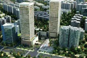 五星級(jí)項(xiàng)目,兩幢52層城市綜合體,地上建筑面積為15.2萬(wàn)平方米,地下建筑面積為2 萬(wàn)平方米,主體建筑總高度216米。