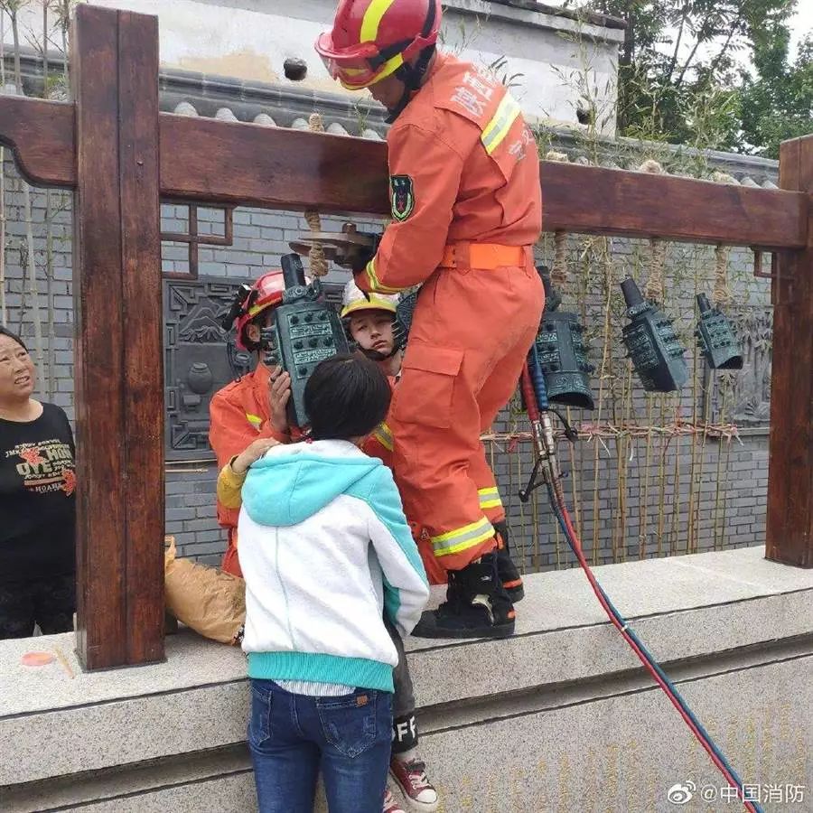 消防蜀黍真厲害,最后從高空放下軟梯,才救下了這個(gè)大哥