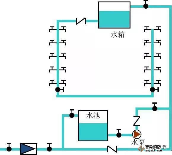 水箱進水管和出水管共用一根立管供水可靠,系統(tǒng)簡單,投資省,可充分利用外網(wǎng)水壓。缺點是水箱水用盡后,用水器具水壓會受外網(wǎng)壓力影響。